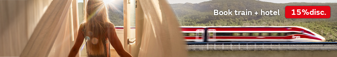 Book today your train + hotel package with a 15% discount and enjoy a complete, hassle-free experience.